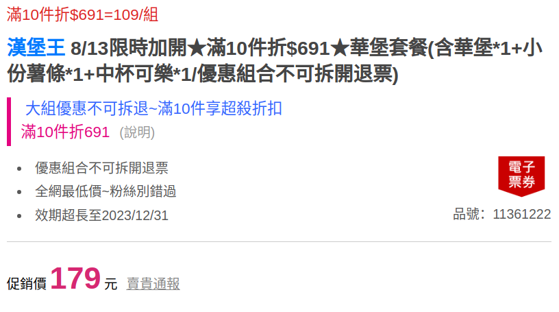 → Kain88: 蝦皮漢堡王券無期限,但商品下架就只能退 61.230.130.9 08/08 23:04
