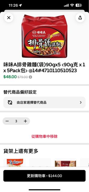 → yihui911: 味味A排骨雞麵我是覺得有便宜 114.33.60.207 08/24 12:57