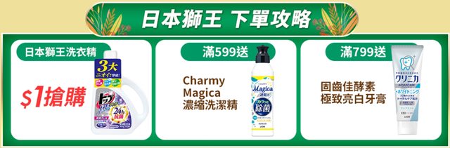 下單可用1元加購洗衣精,滿$599/$799有滿額贈