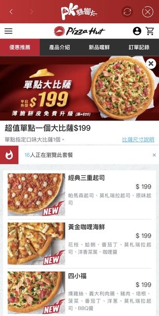 推 leo19981: 必勝客達美樂都有199元,集10點拿坡里 36.239.91.240 10/16 10:08