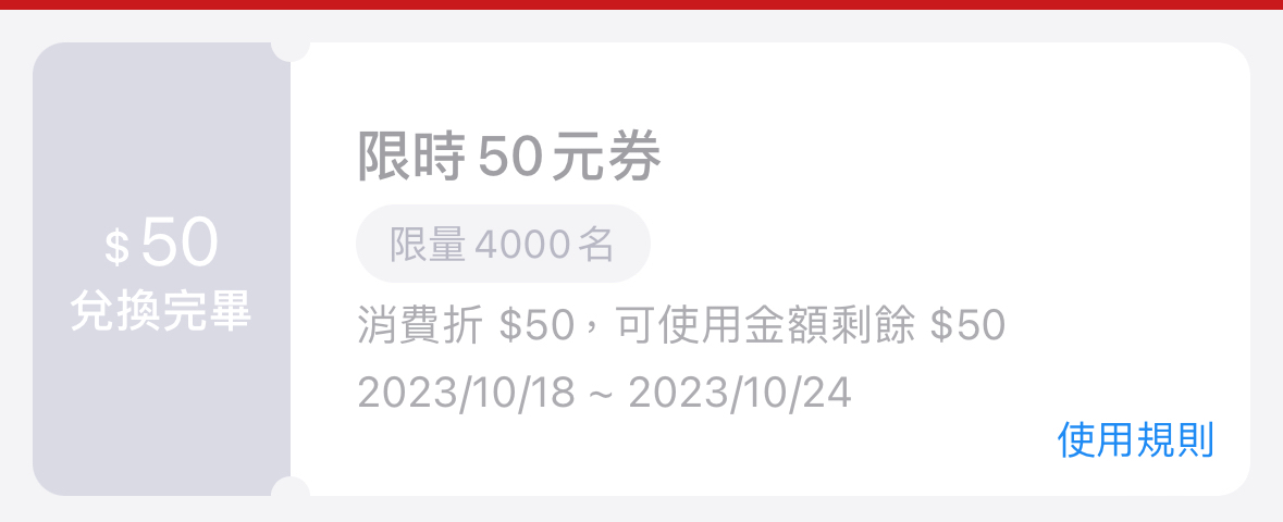 → Mrandy: 沒有了啦 APP上的券都反白了 27.247.38.61 10/18 08:55