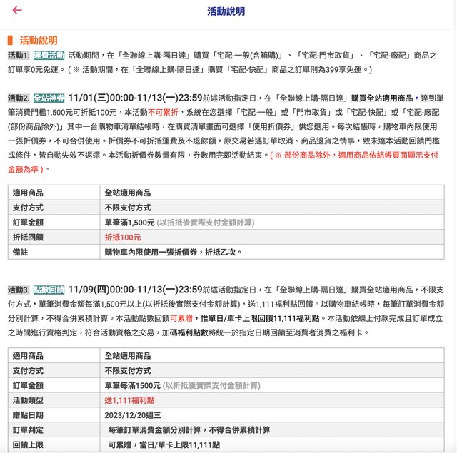 標題[情報] 全聯隔日達雙11滿額折價券