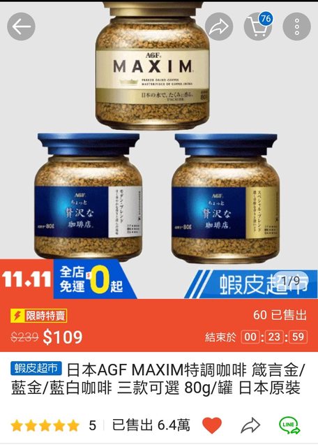 → kurenaiz: AGF金罐*11=1111 可以用折價券折111125.227.247.220 11/03 17:57