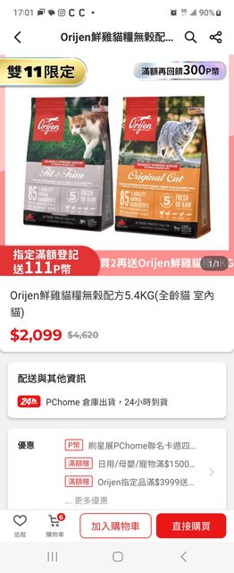 Orijen鮮雞貓糧無榖配方5.4KG(全齡貓 室內貓)