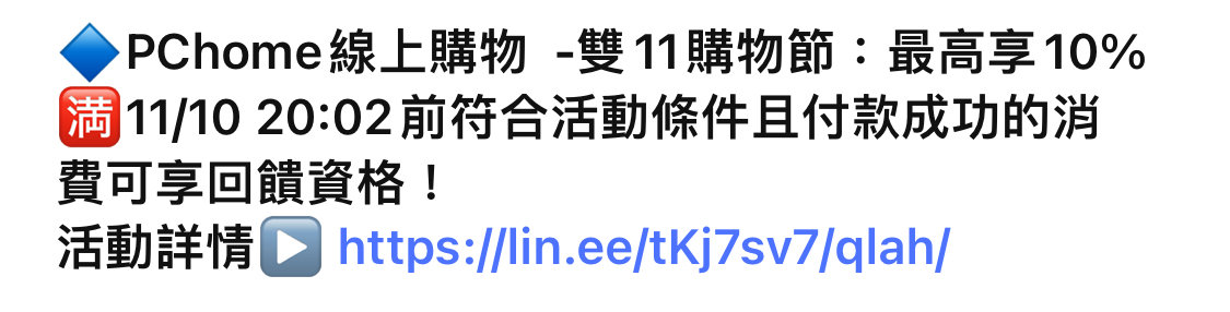 → a910n242: 只收到Line購物5%導購回饋180.217.192.235 11/10 23:26