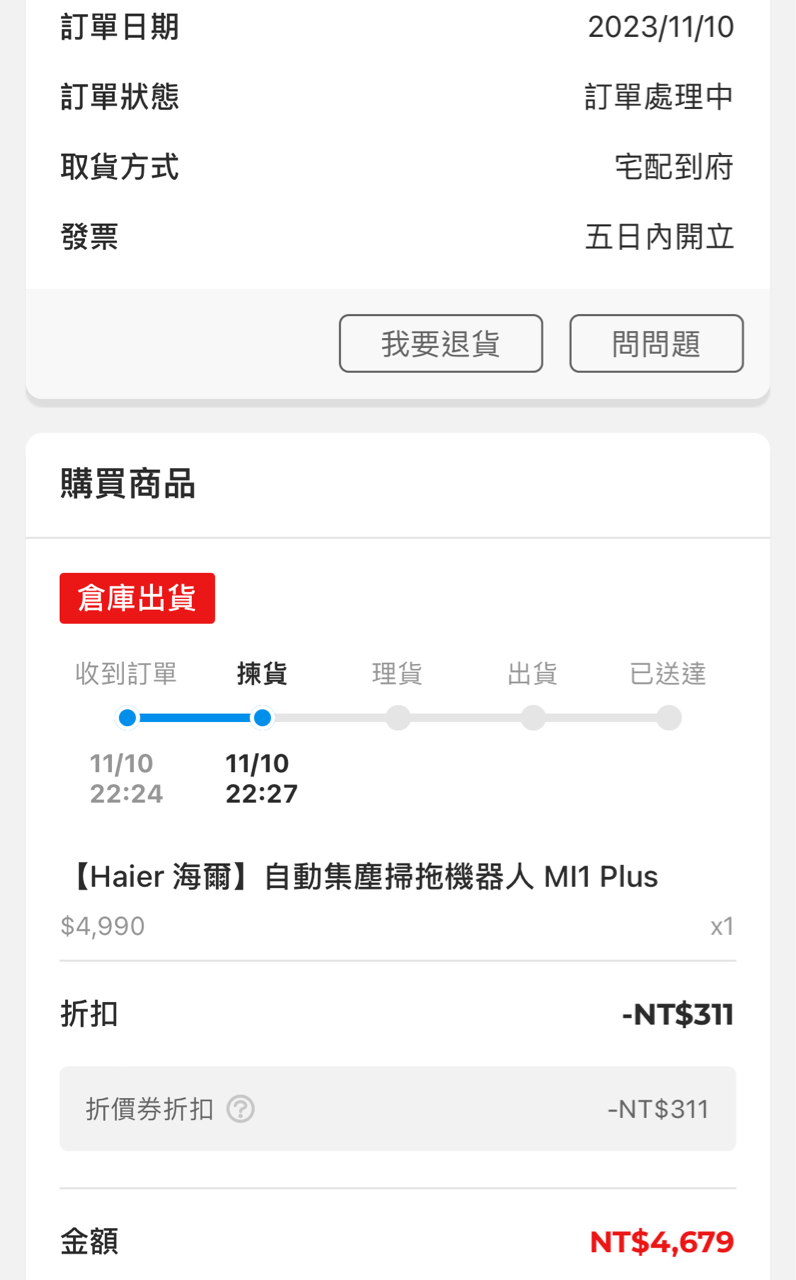 → a112268: 下次還是用網頁別用app超級會掉單 101.136.60.152 11/10 21:41