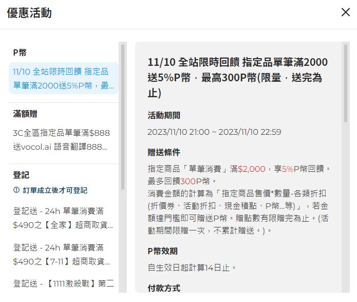 推 hydes: 買2000即享券有5%P幣嗎? 39.12.25.176 11/10 21:57