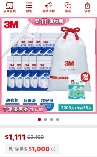 今年打算買的送薄荷牙線棒的,折後$1000,0.49/隻