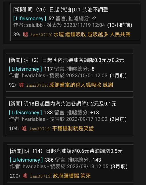 噓 happyhello: 一直降中油會不會倒阿? 223.138.129.33 11/19 19:12