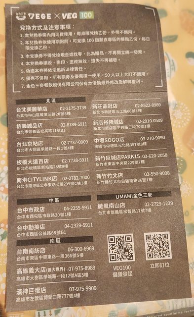 本來想說蔬食有100道 是不是可以天天不重樣 結果100道指的是兌換一百次 是我誤會了 背面是注意事項 https://i.imgur.com/58GCyY7.jpg