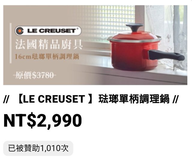 有法國Le Creuset鍋具的贊助品