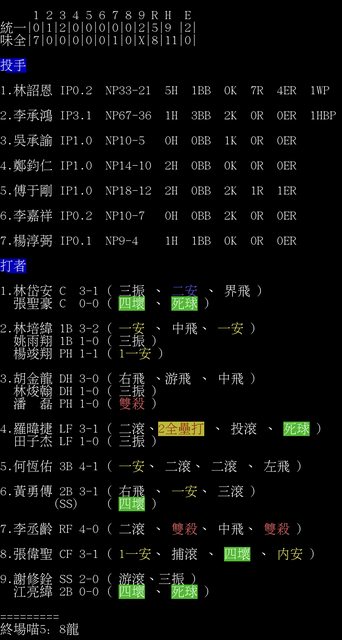 味全|7|0|0|0|0|0|1|0|X|8|11|0|