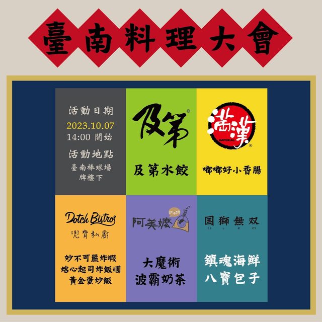 活動地點:台南棒球場 臺南料理大會 (球場牌樓)