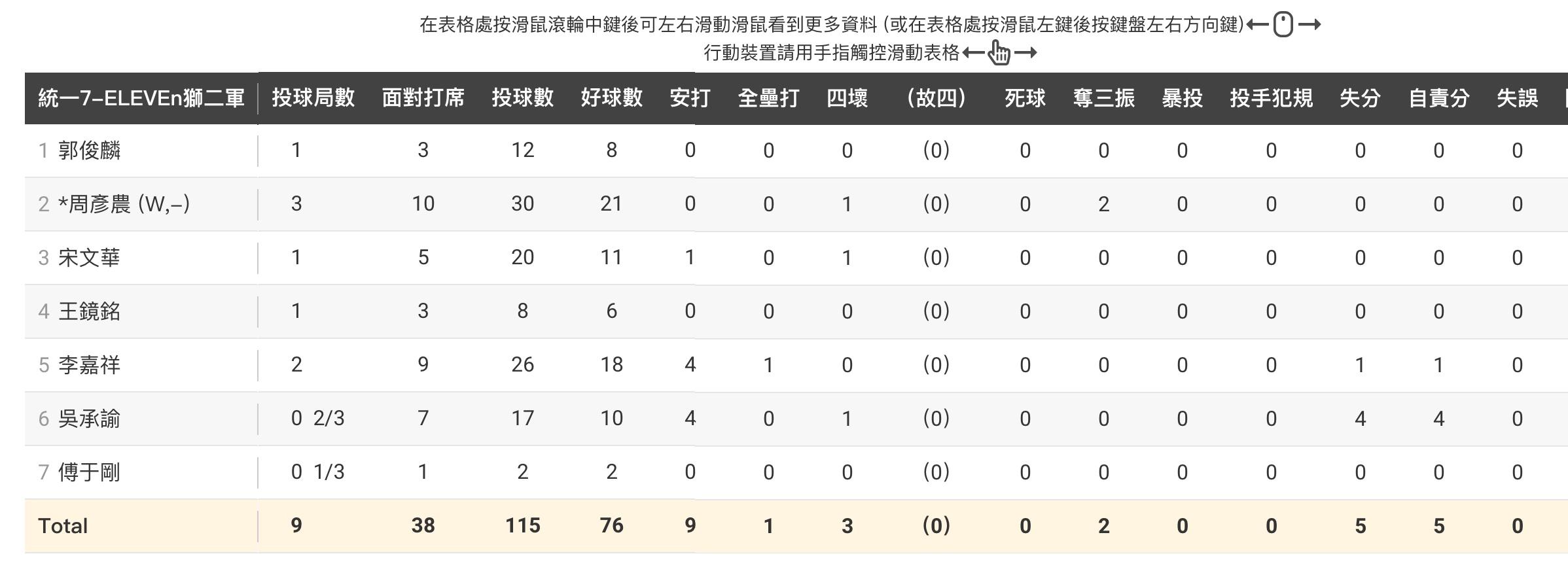 → werger: 第二局換周彥農上場 郭只投一局 04/20 14:30
