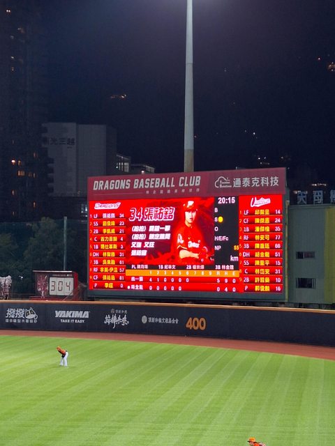 這時候背景是味全龍進攻