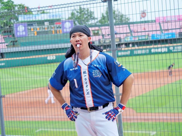 今年雙獅狗牌大勝利, 球員版球衣今年是雙獅這件, 賽後還有專屬的擊掌會, 繞壘一圈+UG+bluelegends擊掌, 香.