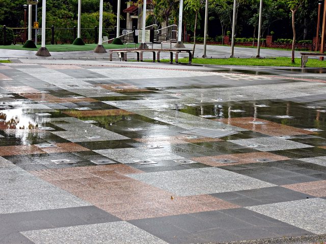 沒噴水的水池,一直下雨害我都沒機會拍到它噴水-.-