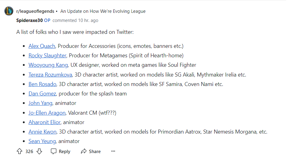 推 kevin50263 : 拳頭也知道這遊戲已經不行了 當然裁員省錢 10/16 08:24
