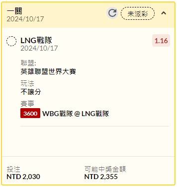 推 atien666 : LNG 3:0,3:1各買一份當定存 10/17 14:42