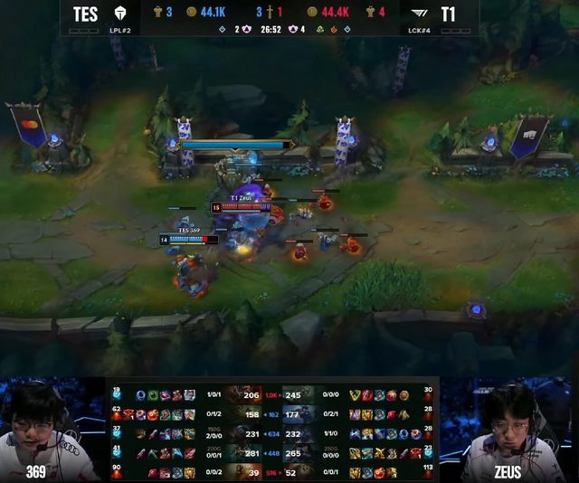 但是宙斯在26分52秒,塔下抓了一波機會,一個Q2直接把369的藍寶三成血量踢沒了