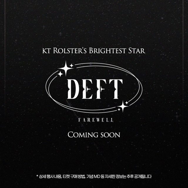A farewell ceremony for kt Rolster’s brightest star Deft, who made many esports fans cry and laugh, will be held on November 17, 2024 Please pay a lot of attention to this farewell ceremony for Deft, who will be taking a moment to pause for comma, not a period. 今年 11 月 17 日,我們將為 KT 最閃耀的那顆星,讓許多電競粉絲歡笑與哭泣的 Deft 舉辦歡送儀式。 請多多關注這個為 Deft 舉辦的告別儀式,這將是一個逗號而非句號。 -- https://i.imgur.com/1HsOMNp.png