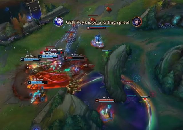: 這是殺完Faker後的站位,那個樹人因為Oner閃現所以綁到一個很差的位置