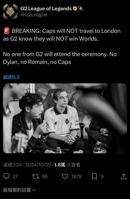 jevin : 震撼彈!G2和Caps缺席總快賽 10/29 02:32