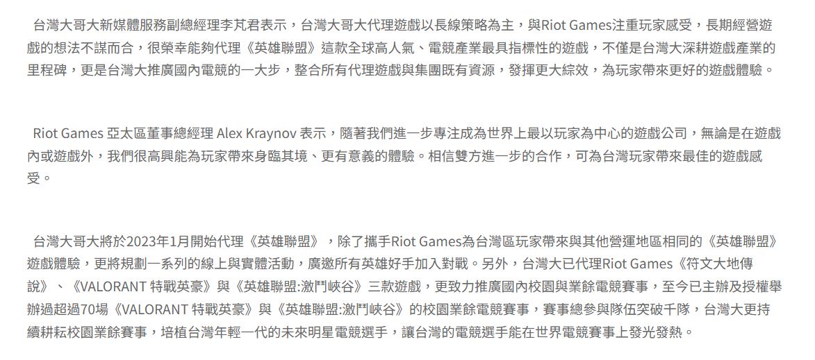 → bluejark : 拳頭負責的是伺服器上的問題但台灣服務是代理台哥大 10/30 18:27