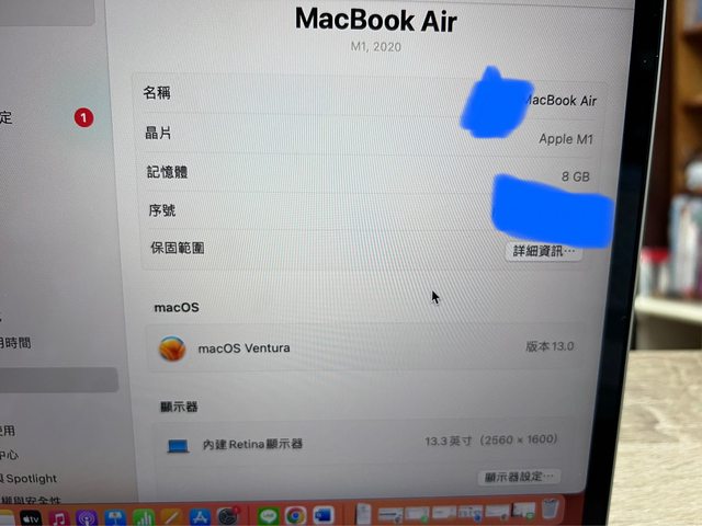 ◎筆電型號: MacBook Air 13'3 m1 2022年款