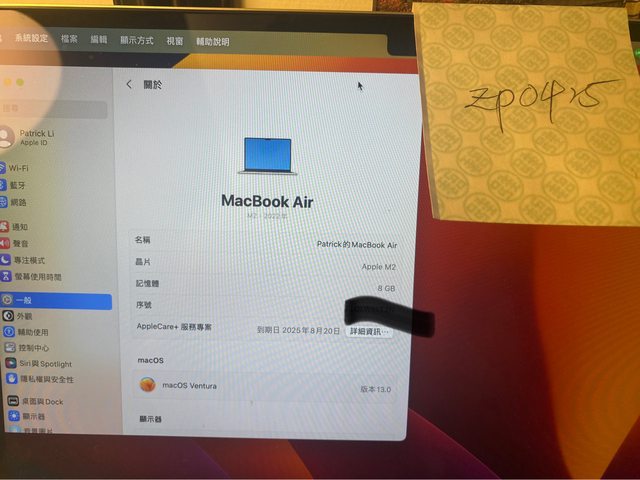 標題[販售] MacBook Air M2 13" 8/512 2022