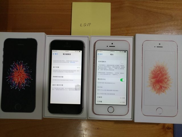 兩支se都有嚴重使用痕跡,面板有浮起,玫瑰金色的電池微微膨脹,5s包膜剛拆掉所以外觀滿新