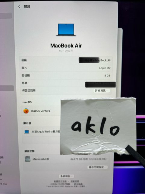標題[販售] 宜蘭 MacBook Air M2 13吋 8/512G午夜色