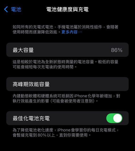 6. 電池健康度86%(如圖)