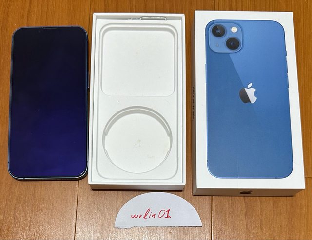 [型號] iPhone 13 [規格] 128G藍色 [保固] 過保 [盒裝配件] 只剩盒子 [售價] 8000元 [交易方式/地點] 面交/北市內湖區 [連絡方式] 站內信 [商品照/補充說明] 電池健康度 83% 邊框除了有保護殼壓出的痕跡外 左上角及右下角各有一處傷痕 螢幕沒被撞到 螢幕保護貼及鏡頭貼已拆 沒有充電線