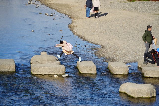 還有大腳一跨的小女孩