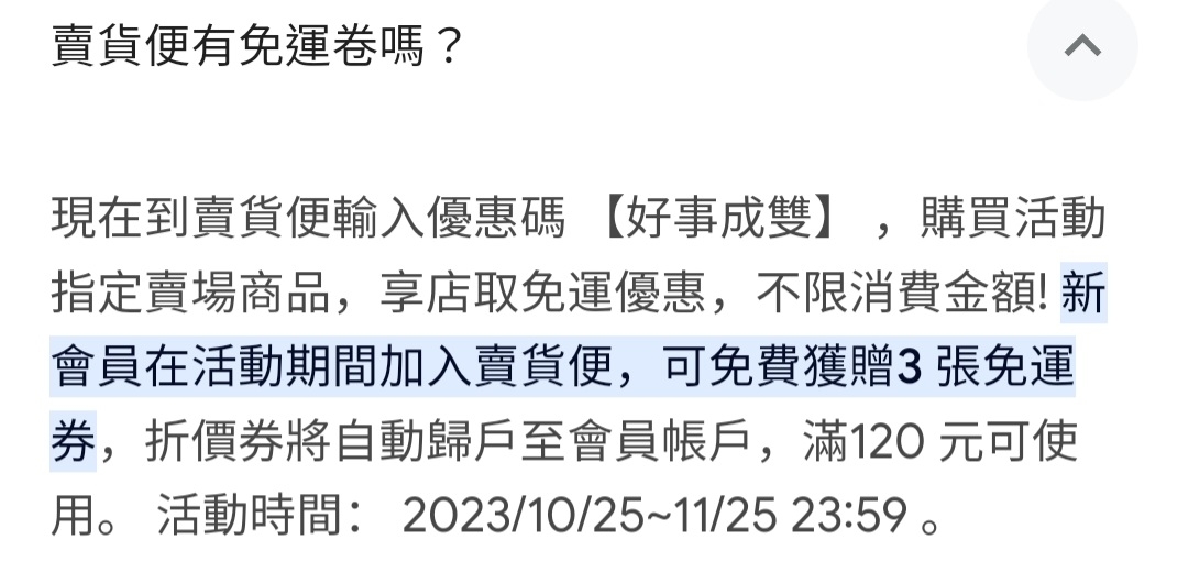 cwt1170980: 賣貨便首頁不定期會有活動 可以看看 11/26 00:11
