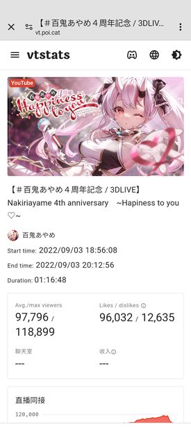來看一下鴨鴨的Live同接最高多少