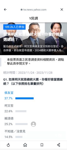 咱們來看看Y民調