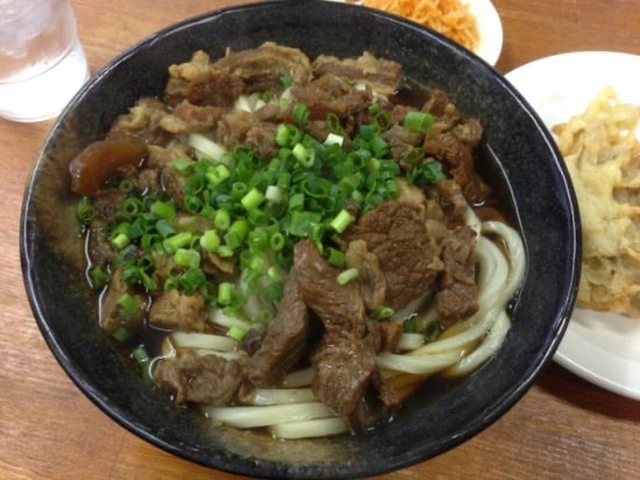醬油湯底烏龍麵+大量的滷製牛筋+牛頰肉