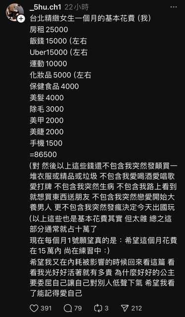 標題台北精緻女生一個月的基本花費