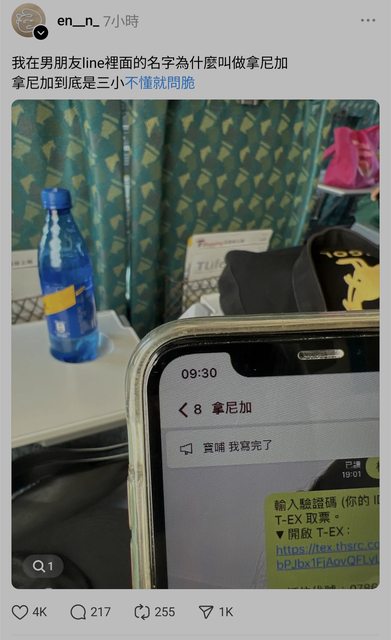 標題[閒聊] 男友的Line幫我取名叫拿尼加
