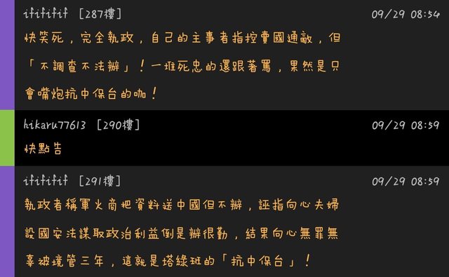 (如指稱板友為「藍白粉」、「蘇貞昌」、「某黨網軍」)
