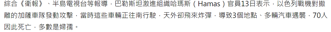 推 AetherG : 哈馬斯釋出的消息,中時聞到後就急著見獵心喜得抄 10/14 21:21