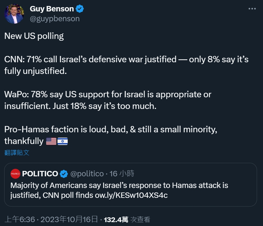 推 Dante6 : 民調造假啦!反以色列遊行這麼多才是主流民意,我 10/16 16:22