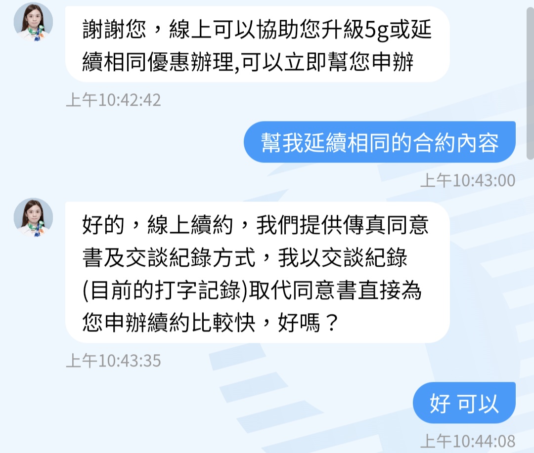 推 basacola : 也是母親節499看到這篇我就去找線上文字客服續約 07/06 10:57