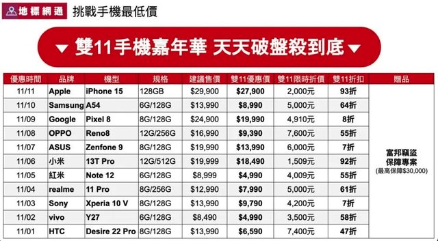 標題[新聞] 地標網通雙11熱門手機破盤最低47折!
