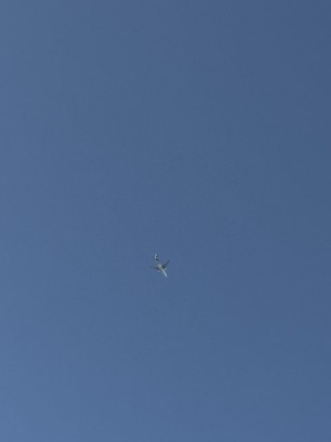 躺在海灘墊上發呆看到有飛機飛過,