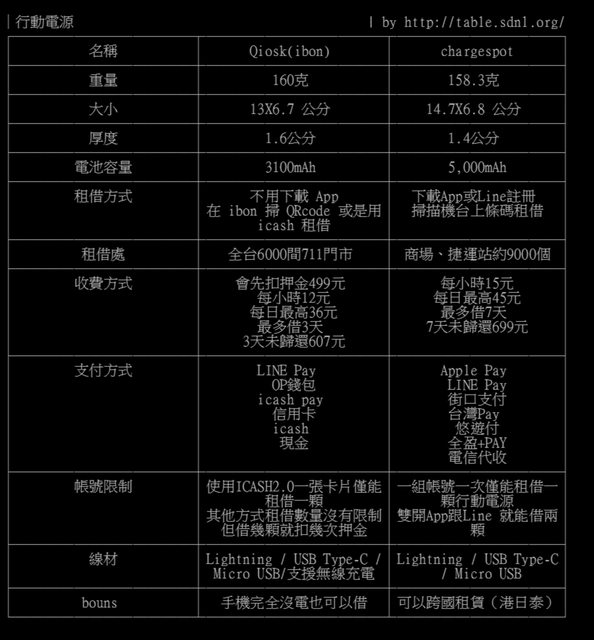 推 kpg0427 : 有心得&表格給推,但還是自己買顆行動電源來的實際 12/06 13:06