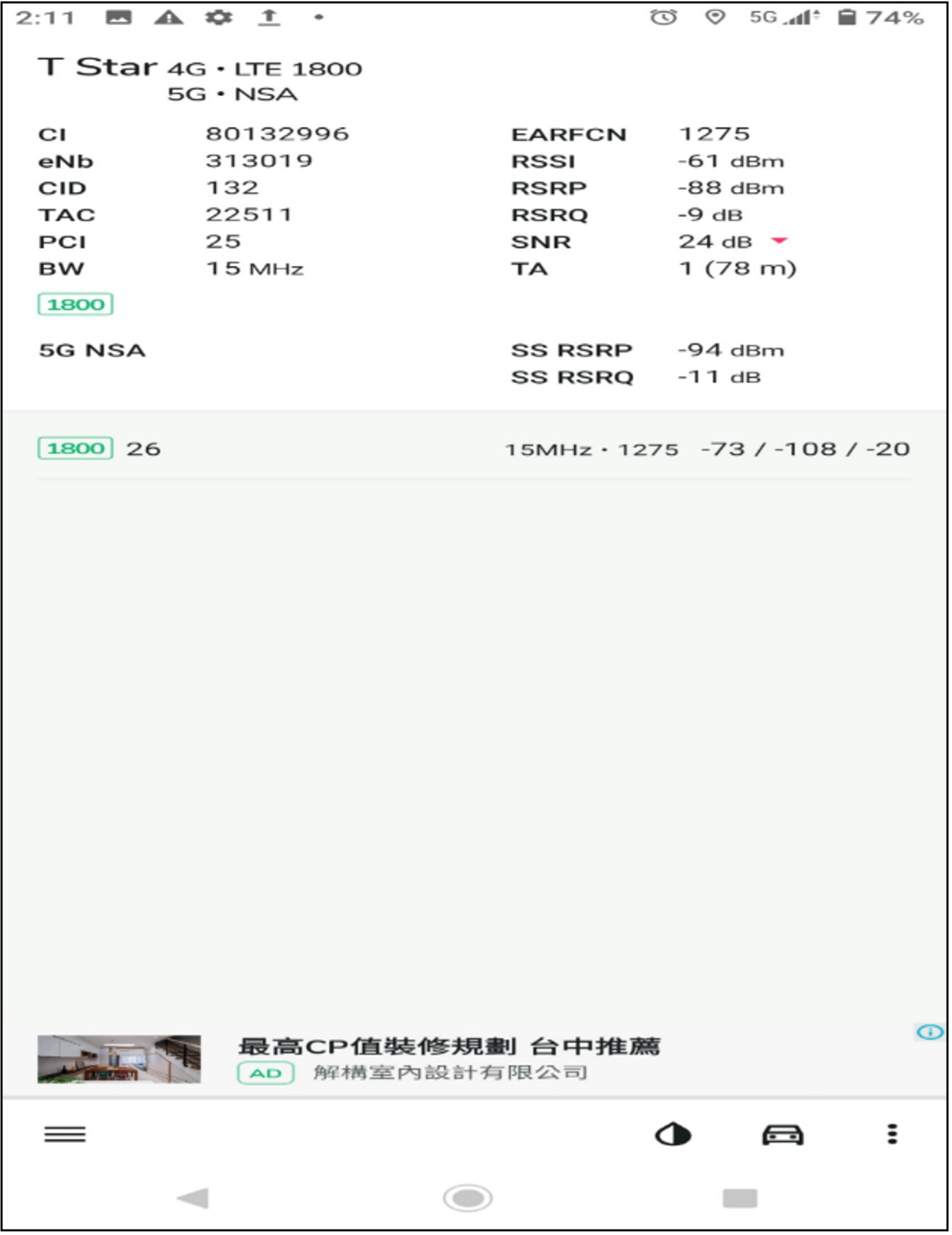 推 Inteldro : 下午測了一下發現已經開始有吃到台哥大1800頻段 12/29 23:25