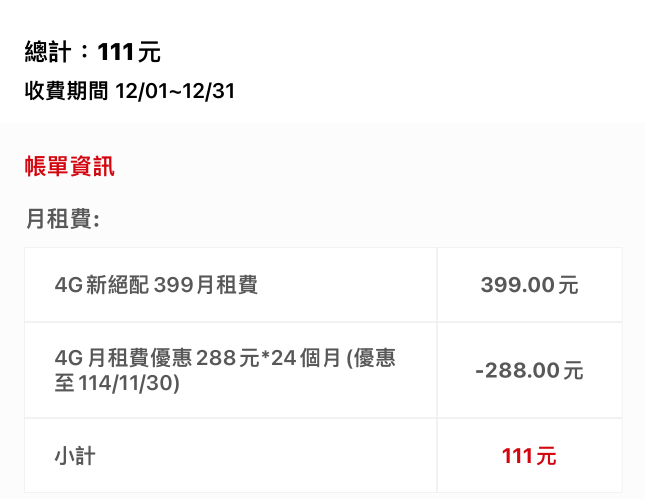 → mark60917 : 我的資費是111。去年11月底到期,也是自動展延到114 01/04 00:55